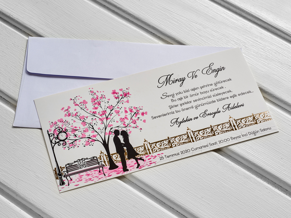 Davetiye Zarfı: Davetiye görseli üzerinde görünen zarf fiyata dahildir.