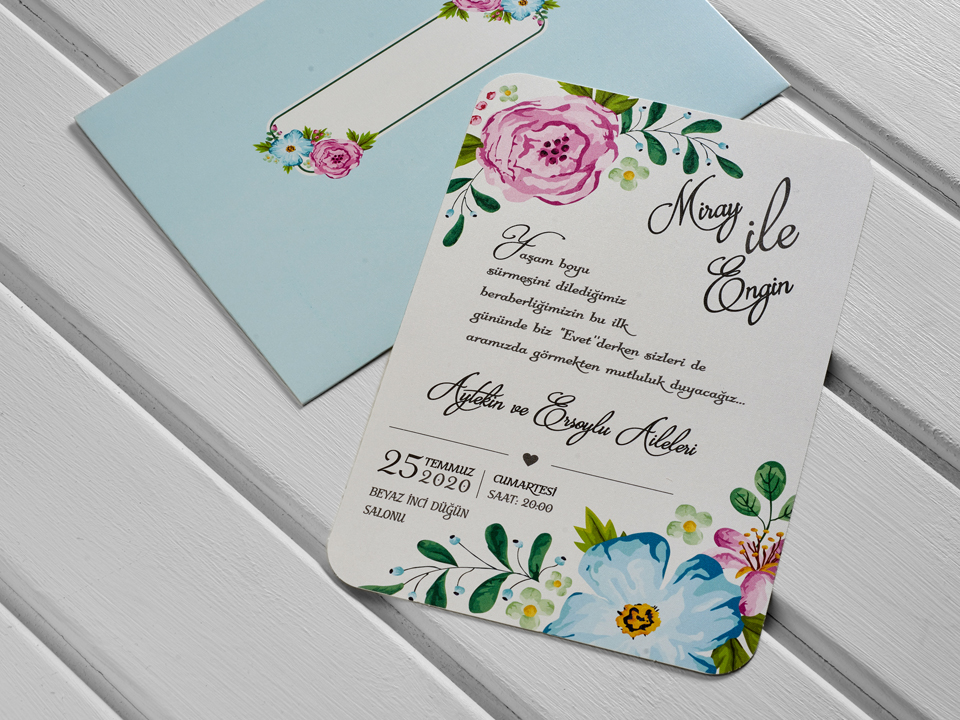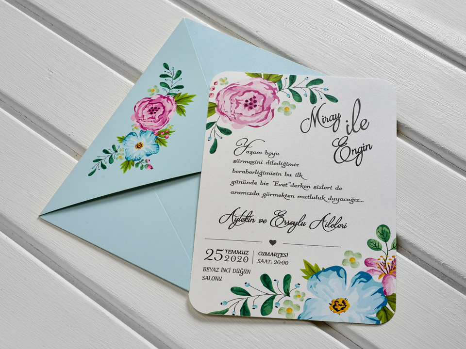 İklim Davetiye 10456 fiyatı 1 Adet Düğün Davetiyesi içindir. Türkiye için geçerli perakende satış fiyatıdır. İklim Davetiye seçiminizi yaptıktan sonra bizimle iletişime geçiniz. Davetiye bilgilerinize göre tasarımı hazırlayıp, onayınızdan sonra ürünü baskıya giriyoruz.
