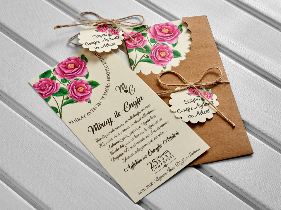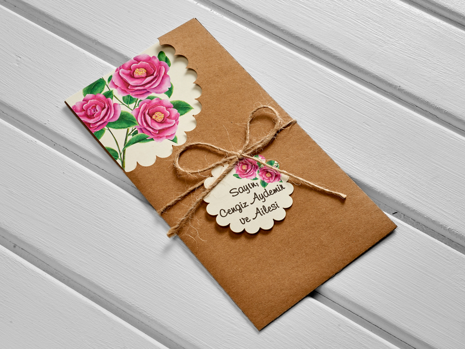 Davetiye Zarfı: Davetiye görseli üzerinde görünen zarf fiyata dahildir.