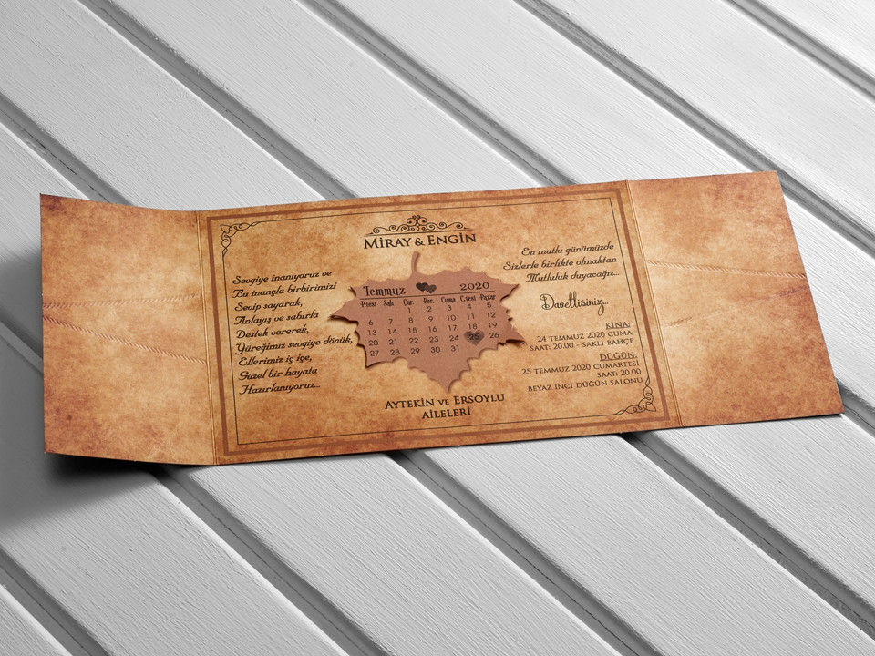 - İklim Davetiye 10543 baskısı isteğiniz doğrultusunda hazırlanır, baskı kısmındaki yazıları ve yazı karakterlerini tamamen siz belirlersiniz.