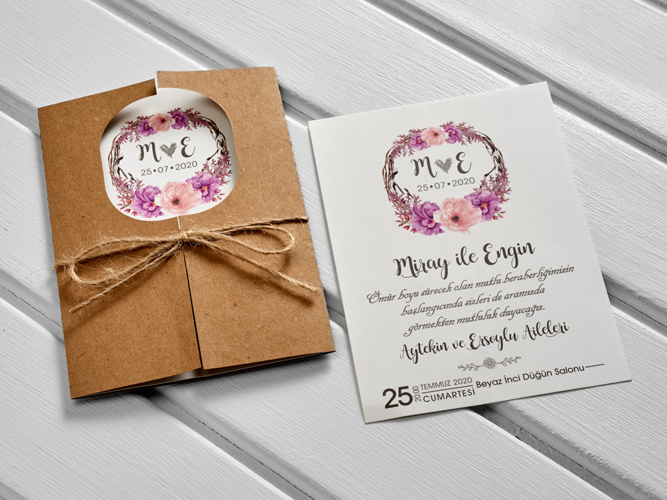- İklim Davetiye 10552 baskısı isteğiniz doğrultusunda hazırlanır, baskı kısmındaki yazıları ve yazı karakterlerini tamamen siz belirlersiniz.