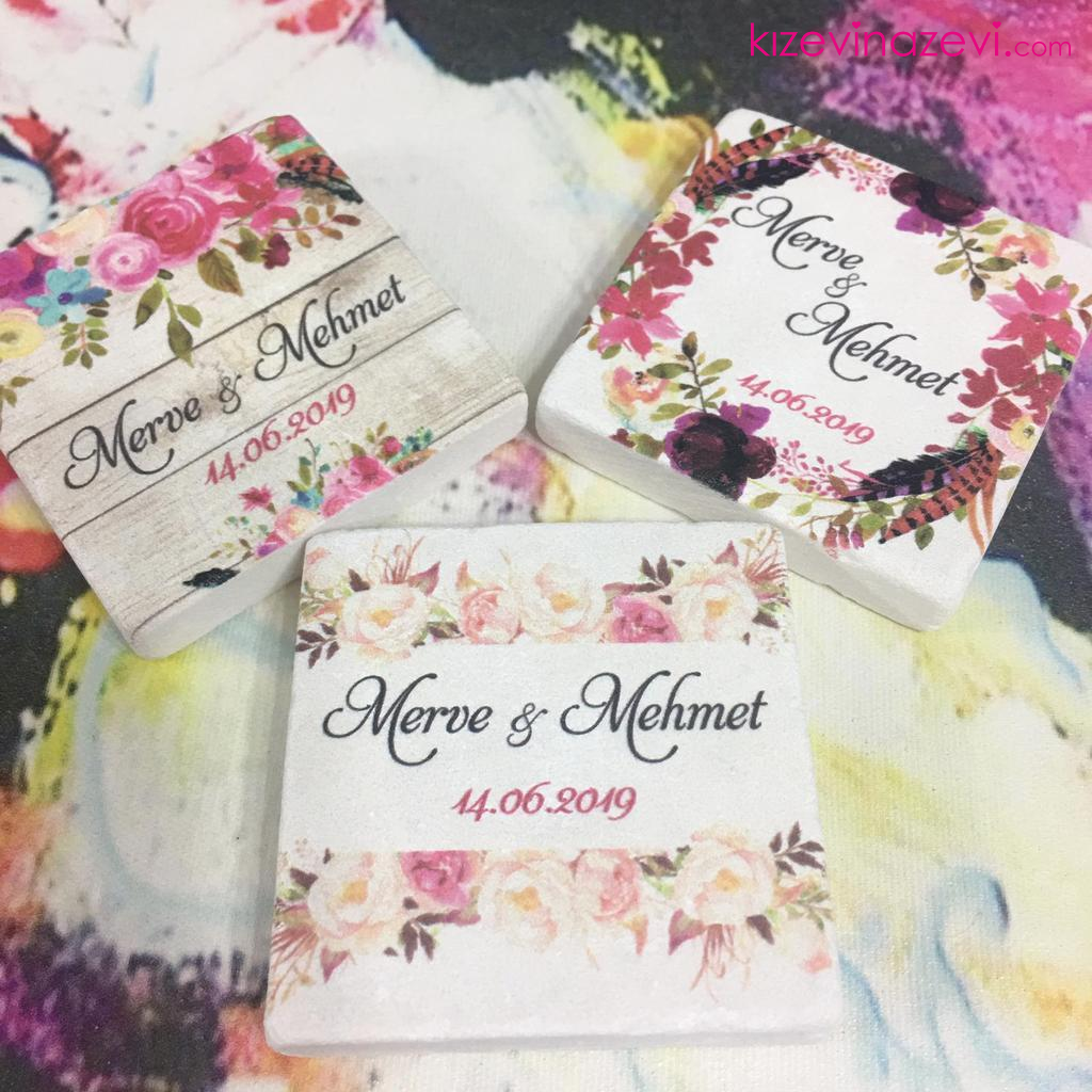 Karışık renkli Gül ve Çiçek temalı nikah hatırası doğal taş magnet 1 Adet Fiyatıdır. Ürün fiyatı sadece Taş Magnet içindir.